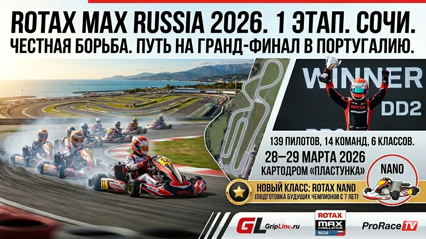 На картодроме «Пластунка» в Сочи официально открылся большой гоночный сезон. Первый этап серии Rotax Max Russia 2026 собрал внушительный состав: 139 спортсменов из 14 команд со всей страны — от Калининграда до Владивостока. Несмотря на серьезные проблемы с городским интернетом, команда организаторов обеспечила трансляцию праздника автоспорта, который прошел под знаком бескомпромиссной борьбы за путевки на Гранд-Финал в Португалию.